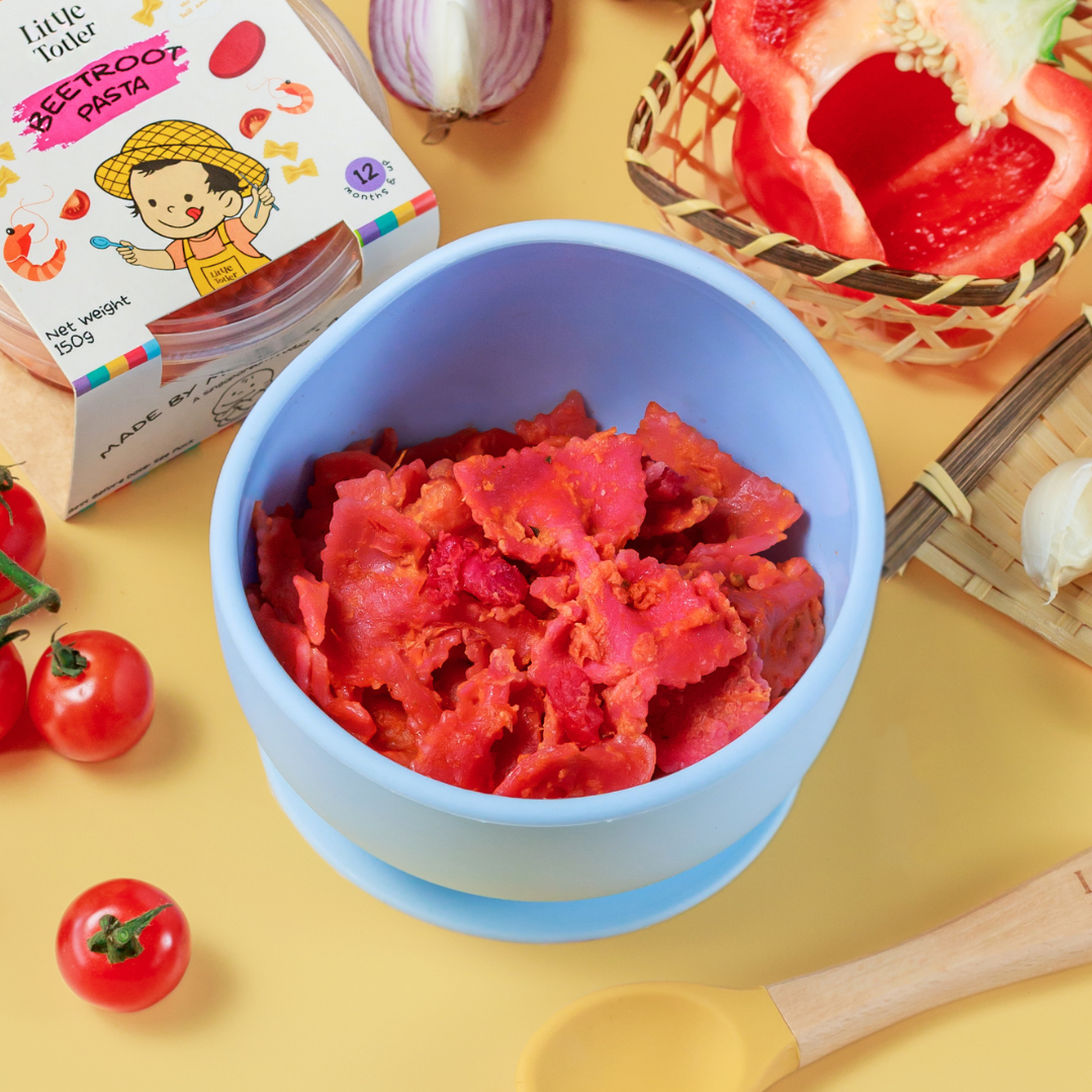 Part of our Clean Range, this vibrant and colorful Rosé Shrimp Pasta is a delightful way to introduce your baby to new tastes and textures. Crafted without added salt, sugar, or preservatives, it combines the natural sweetness of beetroot with tender shrimp and soft, chewy farfalle pasta. Perfect for sensory learning, this meal makes mealtime fun and nutritious for your little one.
