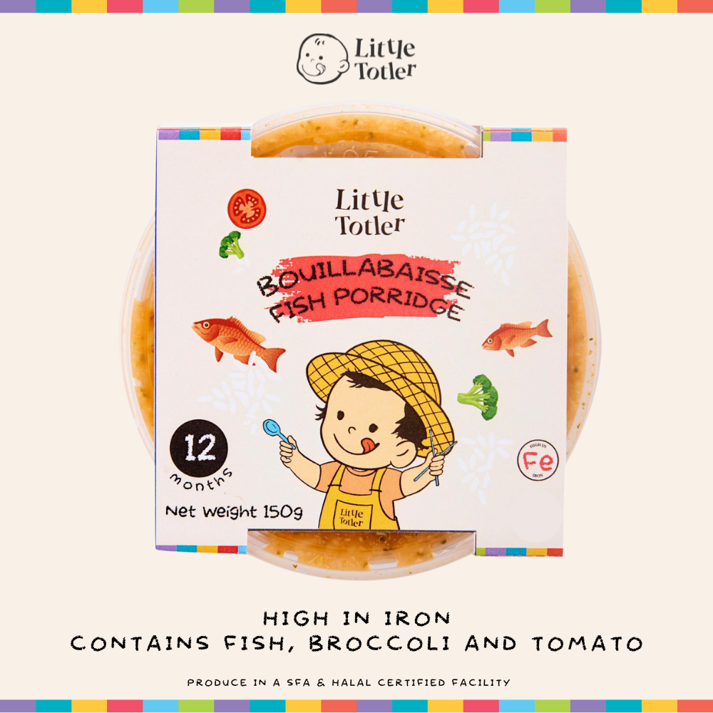 Ingredients: Little Totler Fish Stock (Water, Red Snapper Bones, Garlic, Bay Leaf), Japanese Rice, Tomatoes, Onions, Broccoli, Red Snapper