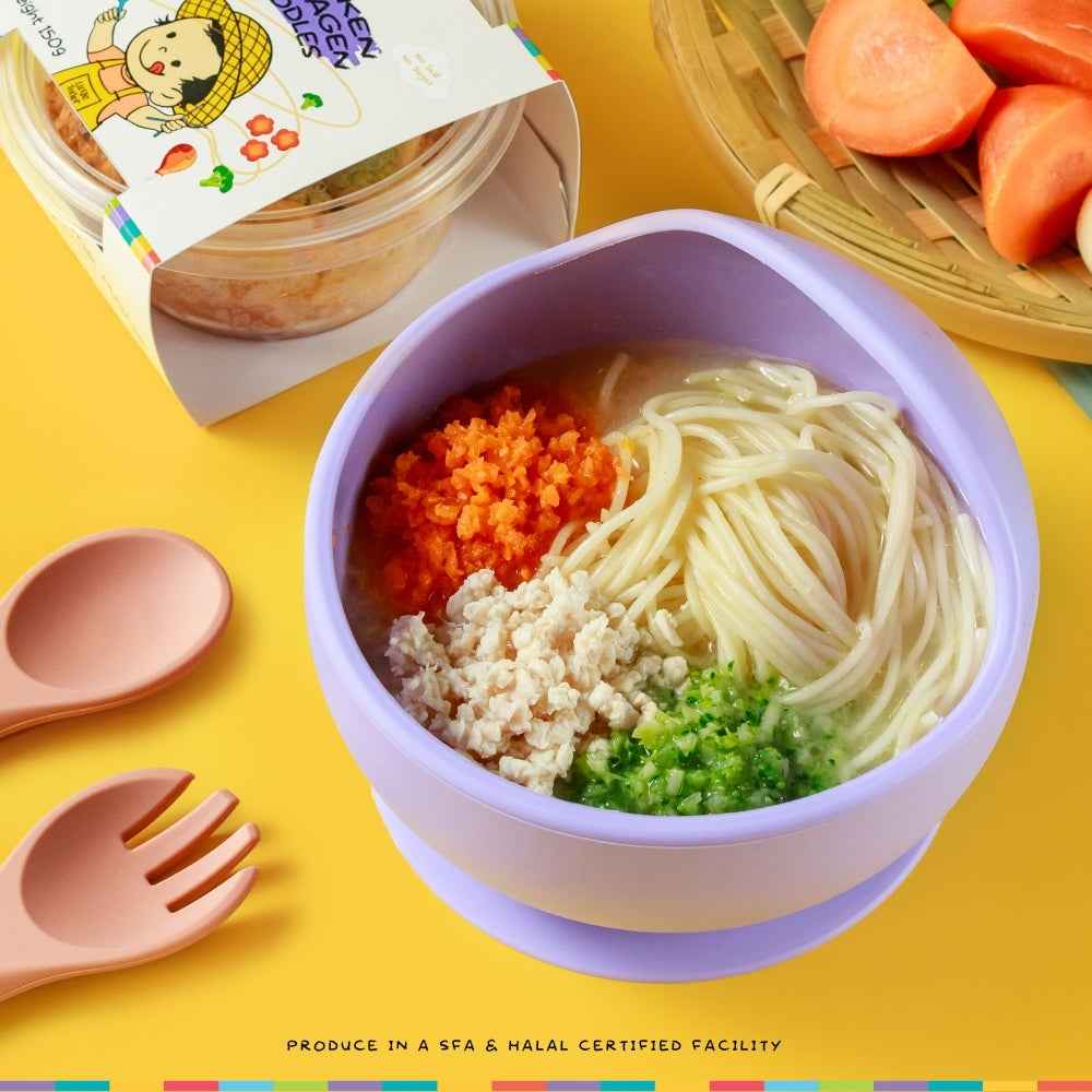 Part of our Clean Range, this Chicken Collagen Ramen offers a rich, nourishing bowl of goodness for your baby. Crafted without added salt, sugar, or preservatives, it features a flavorful chicken collagen broth, tender angel hair pasta, and vibrant vegetables. Perfect for babies just starting their solids journey, this meal supports sensory learning with its soft textures and wholesome taste.
