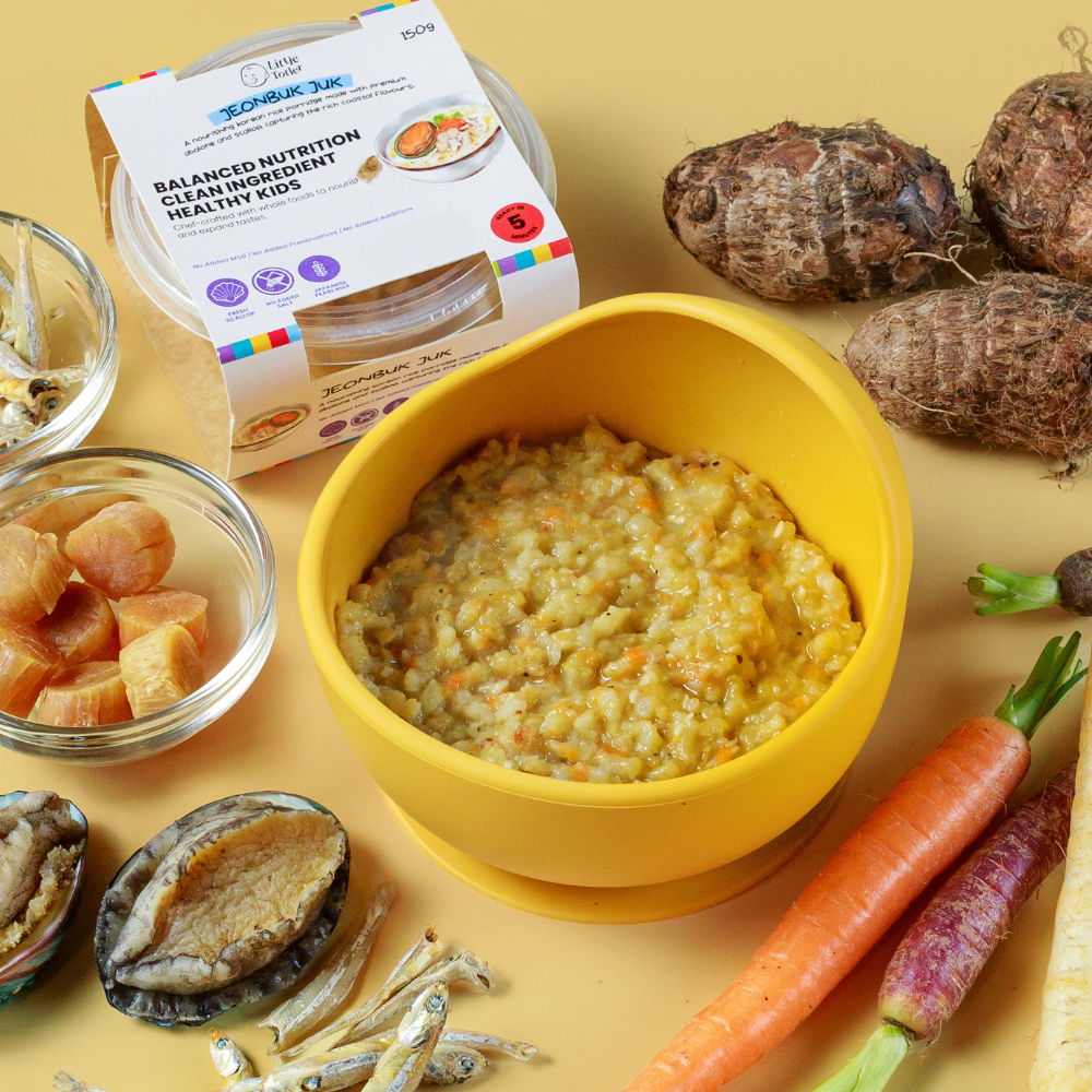 A nourishing, salt-free porridge inspired by Korean comfort food. Packed with protein-rich seafood and gently sweet root vegetables, Jeonbuk Juk is simmered in our signature chicken broth for a naturally flavourful and nutrient-rich meal—perfect for babies exploring deeper umami without added salt.