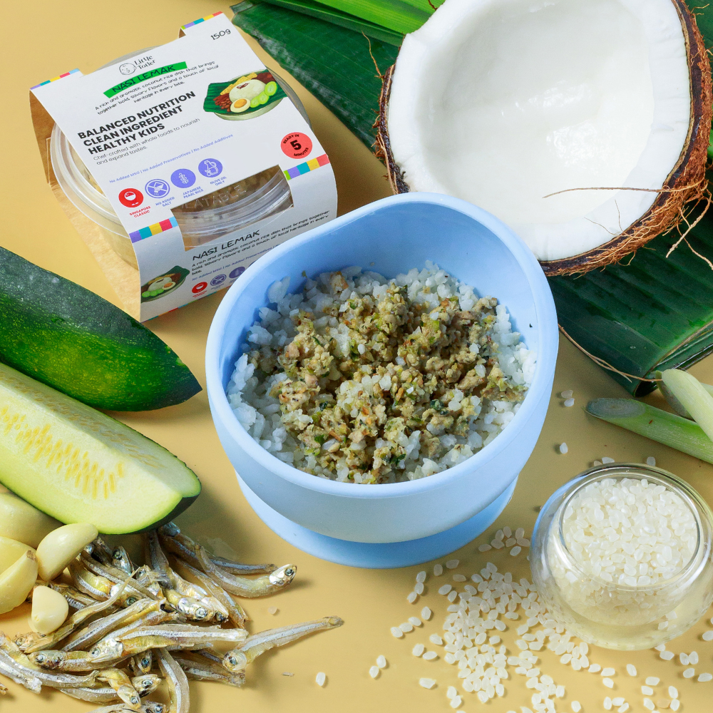 This baby-friendly spin on Nasi Lemak features rich coconut rice, tender chicken, and local herbs like pandan and lemongrass. Naturally seasoned without added salt, it brings familiar local flavors to your baby’s plate in a gentle and wholesome way.